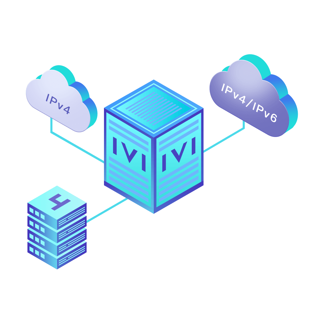 對(duì)正在進(jìn)行IPv6整體升級(jí)規(guī)劃的運(yùn)營(yíng)商,應(yīng)用IPv6升級(jí)方案2.5,通過(guò)IVI無(wú)狀態(tài)翻譯技術(shù)和純IPv6接入網(wǎng)絡(luò),為雙??蛻?hù)端和雙棧服務(wù)器提供連通服務(wù)。